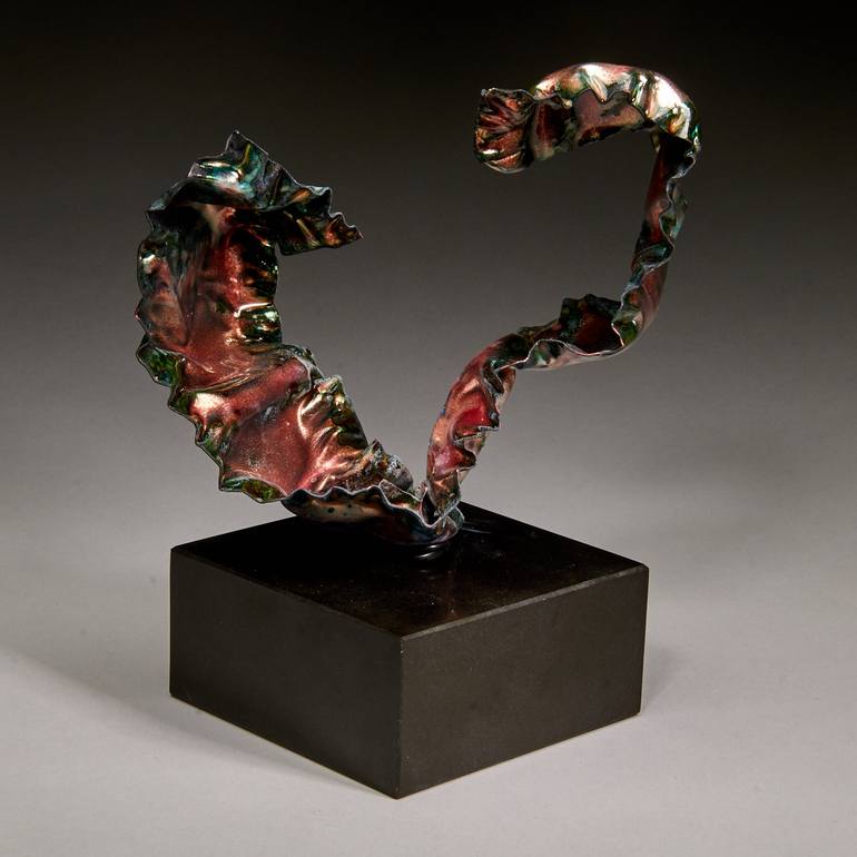 Stunning and vibrant, this piece is powerful. Like two dancers in the perfection of oneness, the color and shape denote movement and openness that one always finds while traveling through love. The bohemian artistry of being able to form metal into shapes and textures allows me to create sculptural...