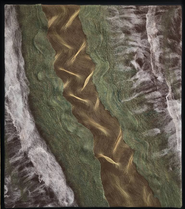 This piece was inspired by the natural beauty of Iceland. Thingvellir is a historic site in Iceland that sits in a rift valley caused by the separation of the North American and Europeon tectonic plates, with rocky cliffs and fissures. Overlooking the valley, one can imagine the plates moving, drift...