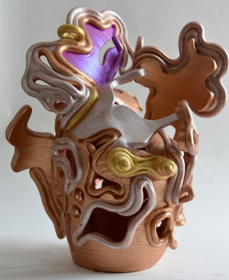 I created this sculpture using the age old technique of coiling with clay. Clay has been a medium for personal growth and discovery for me. The images that come forth from my imagination have deep resemblance to religious imagery of my early years and resonate with spiritual themes. The pieces in th...