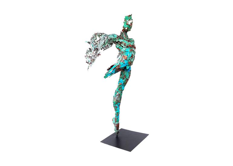 She dances her cares away! A beautiful sculpture of a ballet dancer is portrayed! She is incomplete as she stands on one leg, her arms, her face are all incomprehensible…yet the audience is able to identify this image… The colors are a beautiful shade of turquoise… A stunning piece! 80053-ST-MCE