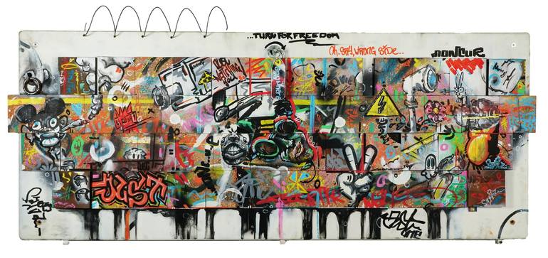 One of our first crazy collaboration pieces from 2019. Terracotta tiles collaged onto an old wooden door. We filled it with freestyle characters, graffiti and marks of the urban streets. The key still turns ("Turn for freedom... Oh sorry, wrong side!"). This piece is heavy, very heavy in fact but it...