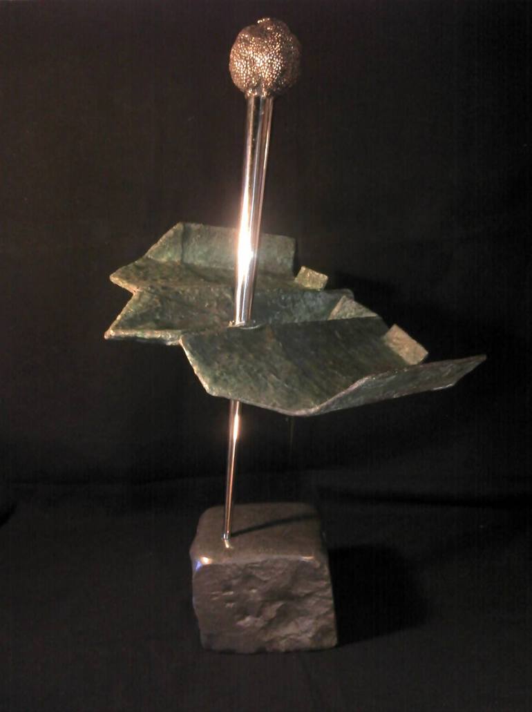 Children weave dreams, their imaginations soar, thepaper airplane they throw can fly as far as they like, up into the sky, easily and freely. The sculpture shows the of becoming an adult... The light paper airplane thickens into a heavy and expensive material, free flight is replaced by a static e...