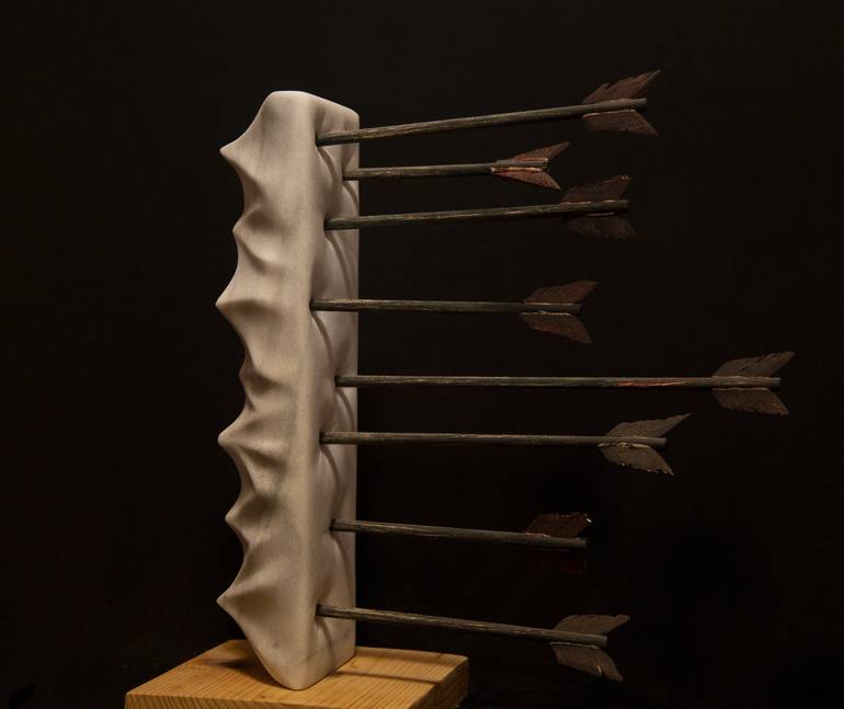 Hand-crafted greek marble on wooden base Conceptual art This artwork symbolizes gossip, the unjustifiable attacks on an individual’s personality. When we speak ill of someone, accusing and defaming them, our words become a lance that irreparably wounds their soul and character. Through this wor...
