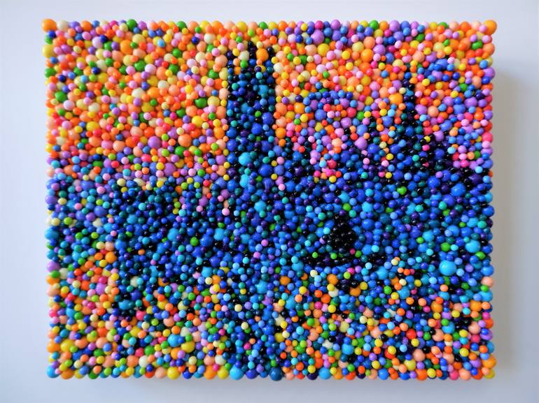 This unique sculpture was made in never-seen-before style, 3D Pointillism. Every single little ball is made by my hands. With this artwork will be sent a set for hanging the piece. Accompanied by a signed Certificate of Authenticity to protect your investment as an original work.
