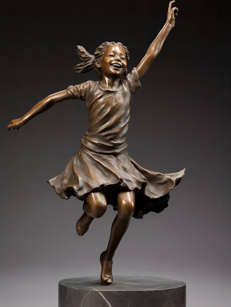 This sculpture is a celebration of the human form and the joy of dance. It is a bronze sculpture of a young girl in a flowing dress, with her arms outstretched and her head thrown back in laughter. The sculpture captures the feeling of freedom and happiness that comes from dancing. The artist, Isabe...