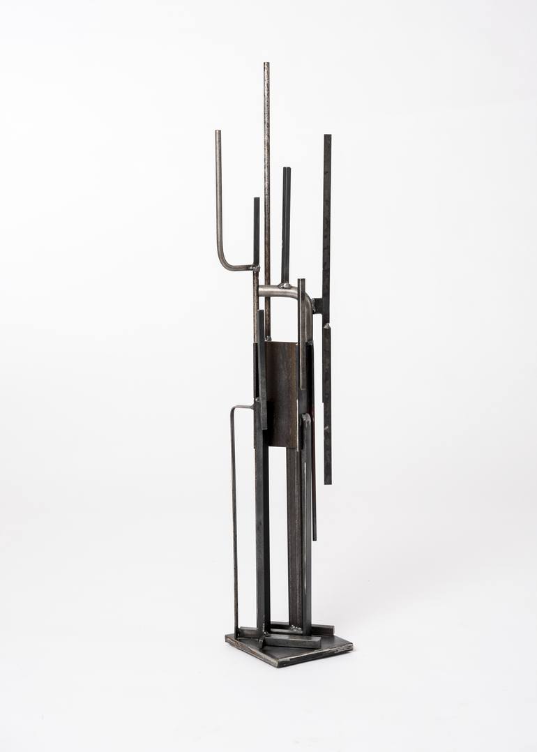 Mild steel abstract sculpture representing a towering architectural or industrial structure.
