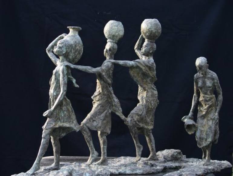 Those who carry a full jug show solidarity, but alas, if jour jug is broken, then you walk there as beaten. This bronze sculpture can be placed both in the house or in the garden.