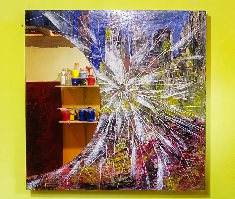 This minimalist work was created because of boredom seeing monotonous painting without any variations, with this simple work we created a blend of painting and interior design in the form of mirror glass as its main role. Made using span ram wood and 5 mm plywood, 3 mm mirror glass with a diameter o...