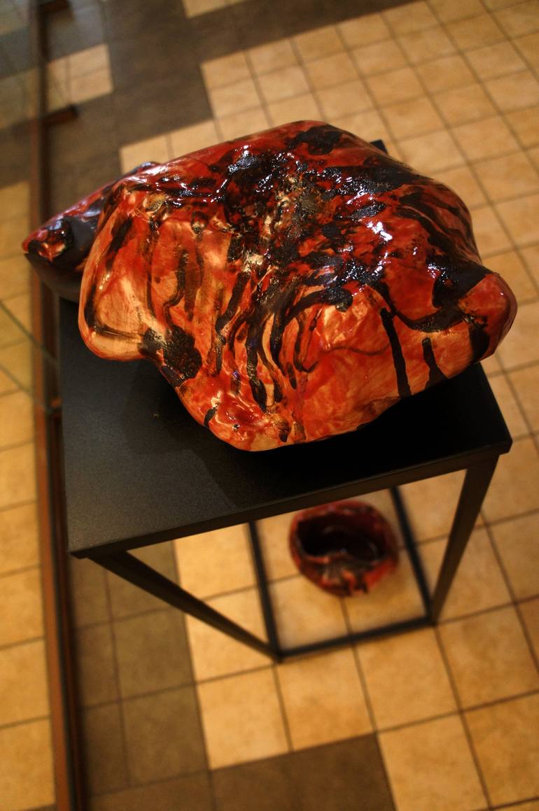 "The Heart of the Seed" is a ceramic piece that embodies the essence of life’s beginnings through its amorphous shape. This artwork radiates a sense of organic fluidity, inviting viewers to contemplate the complexities of growth and transformation. The surface is adorned with dynamic red and brown m...