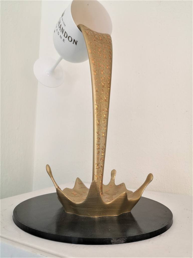 Brother X - The ultimate way of living Mixed media - Hand signed, - 2021 The ultimate way of living Brother X's work features faces, hands, heads with a very clear focus on expressions. The ultimate way of living gives an authentic Moët Chandon champaign glass with champaign falling out with Louis...