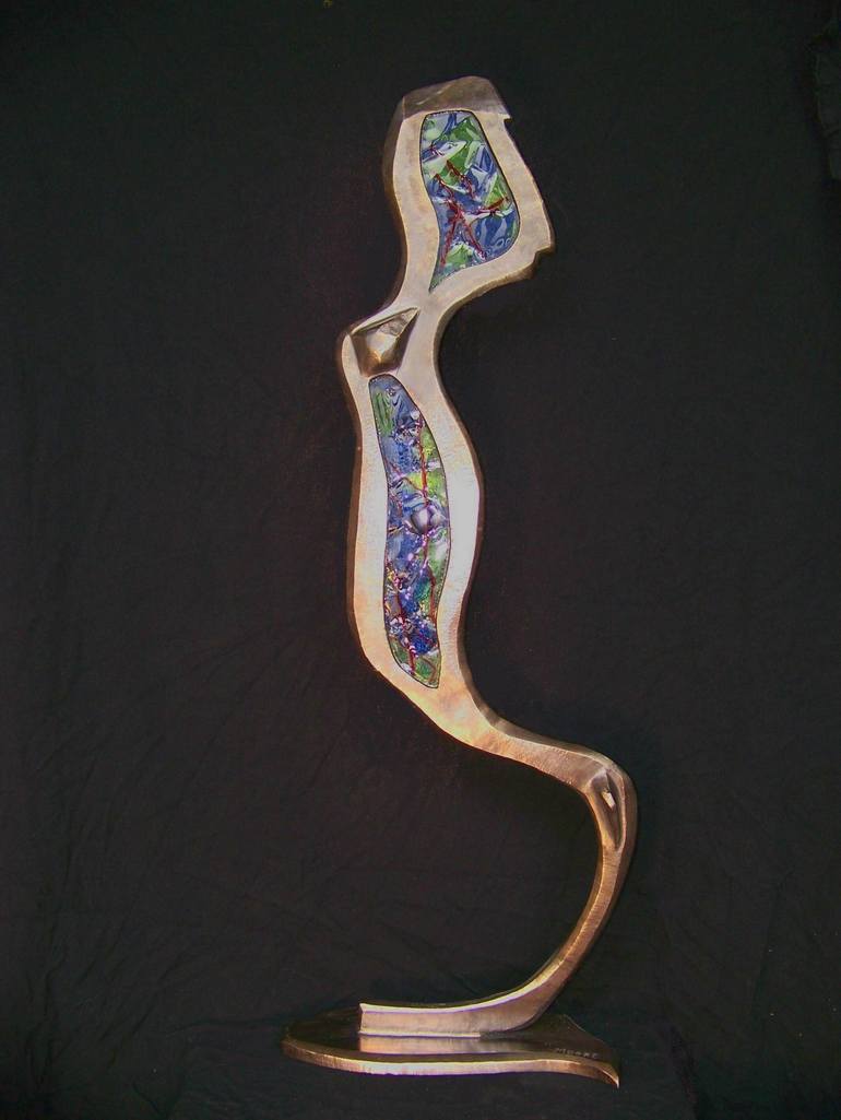 Inspired by the ancient ruins at Tikal. Luminary--- a body that gives light, especially one of the heavenly bodies; one who is a source of light in the world in which he moves. "The Luminaries Series"---Bronze and Hand Hand-Cast Glass, each is Unique (1/1), the series is available from 12" to 72" H....