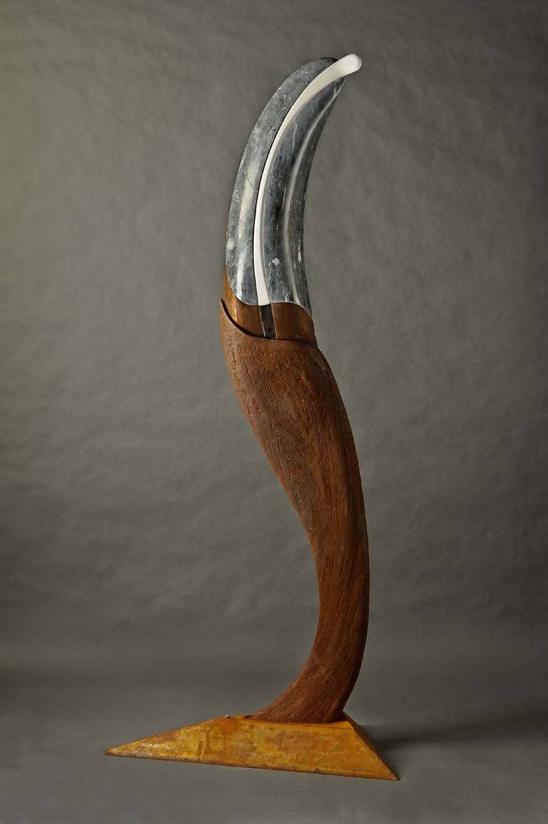 This is a piece where the concept of form preceded the input from the materials. I had just discovered a quarry in Arizona that extracted black marble and was on my way to check it out while delivering a commission to California. While driving, as I often do, I played out a form in my head with bl...