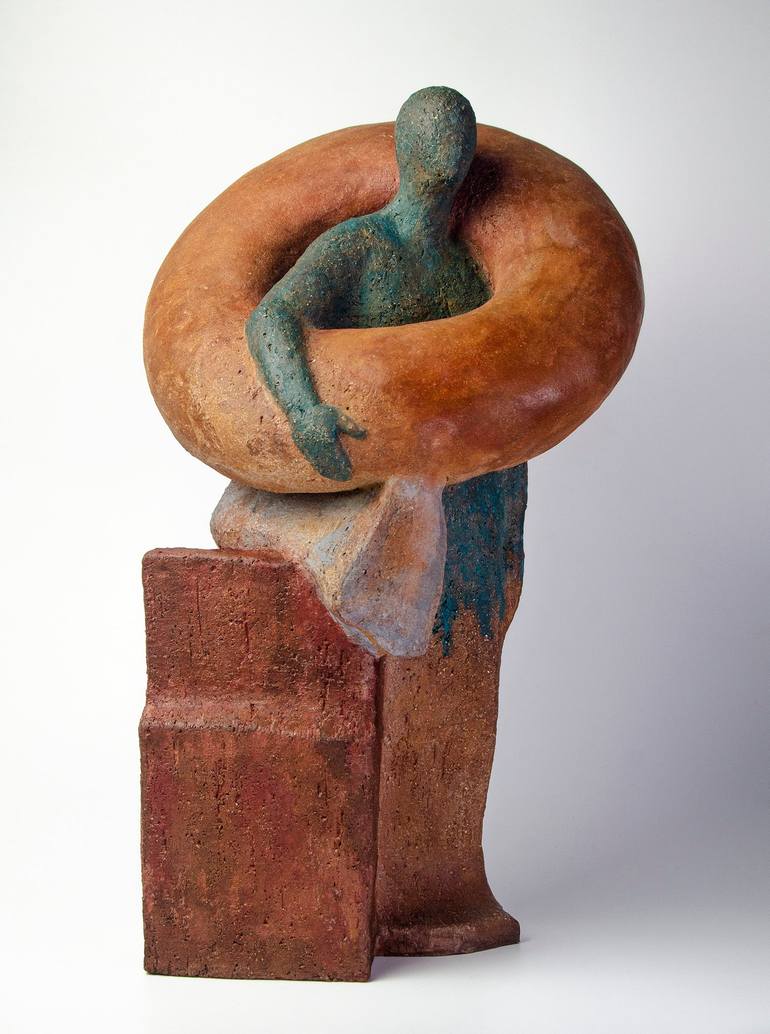My figurative artwork, wants to go beyond a pose and a body. Investigates with the movement and adds imaginative details or recycled objects founds on the streets. My intention is personalize and give character to figures with expressive faces and with sense of humour, creating sometimes dream-like figures, social issues or with some surrealistic point but always looking for a touch of poetry and generate questions to the spectator. I use clay as an expressive material. This special kind of clay, seduces me for its physical characteristics because it forces me to get an intimal relation while modelling with my own hands, whereas the necessary care to preserve it during the creation process, produces me a personal union with every piece.