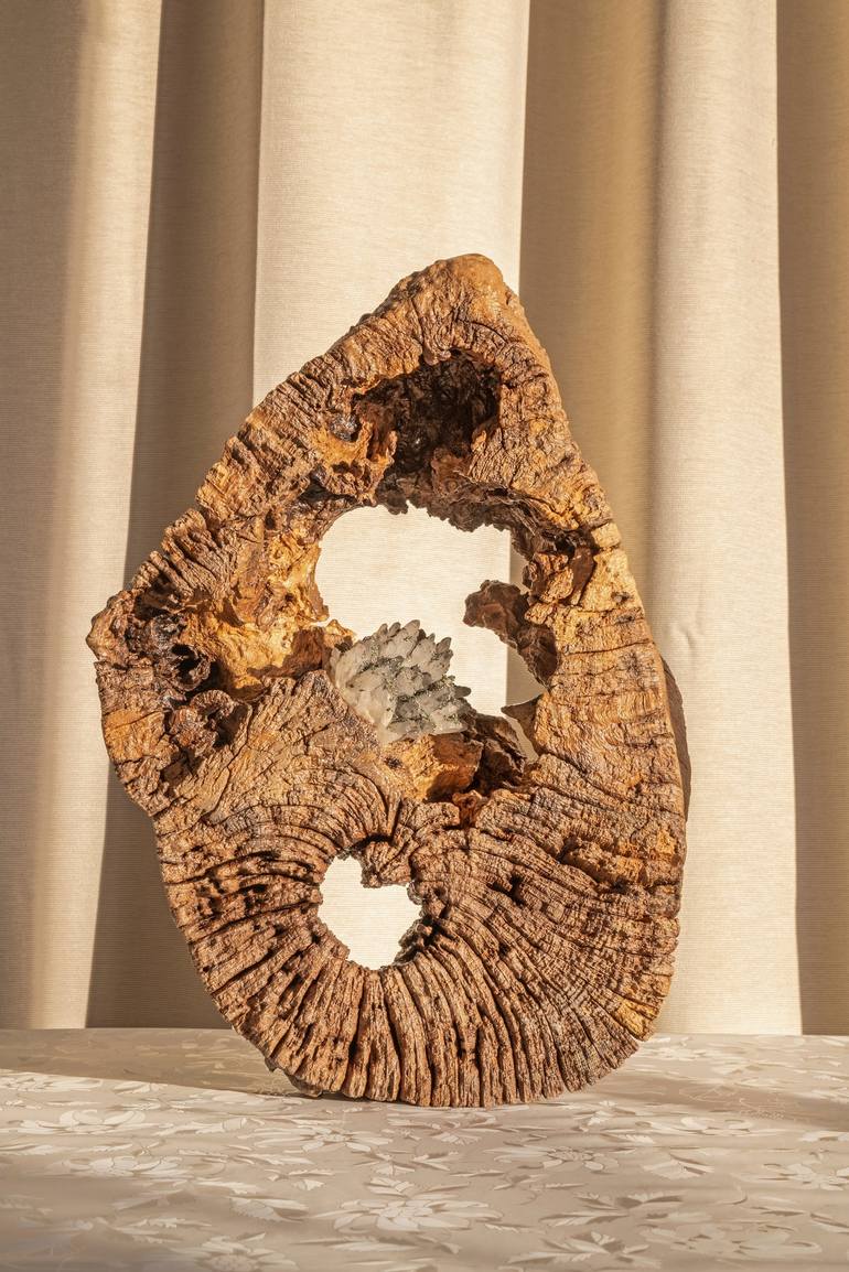 Treasures do not rot - Oak sculpture with the mineral Sculpture
