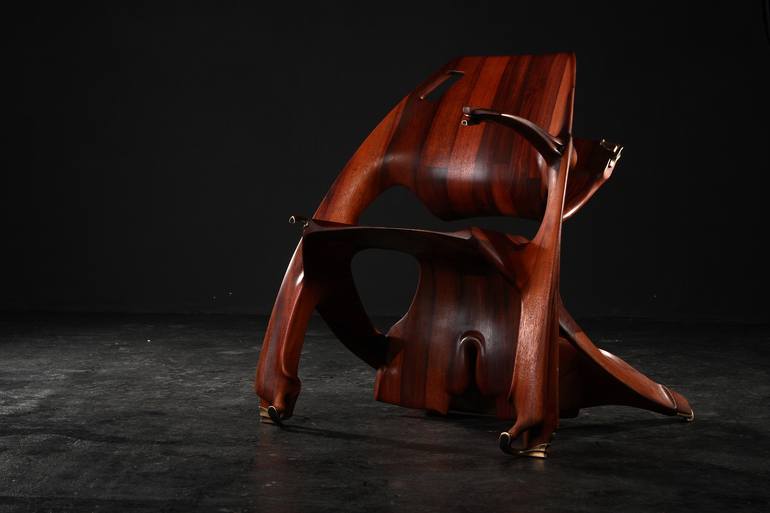 The long held vision that finally came into realization. It was built over three years and is in fact three chairs. Each time you turn it, or rather flip it over back or forth, you get another chair. It is the result of a search for the consistency of form in the diversity of functions. It is sculpt...