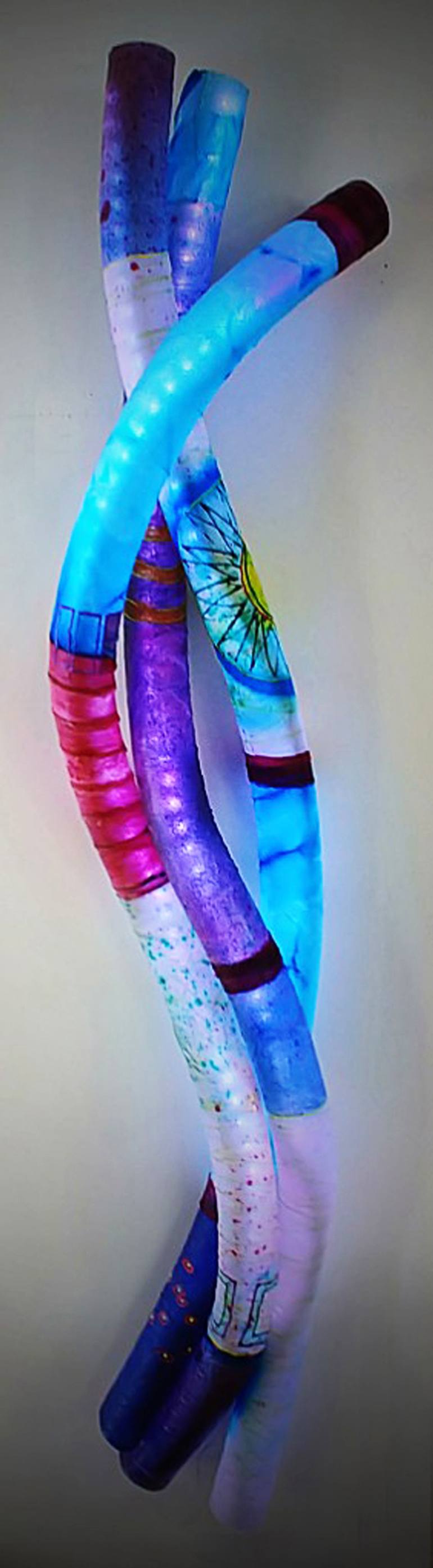 Twist 7 is one of my Illuminated Sculptural Paintings a 180° illusionary, abstract, interplay of color and LED color lighting. Moving around the sculpture, you will see a different painting with every step. With the remote control you may change the look, color, intensity, and modalities of the pain...