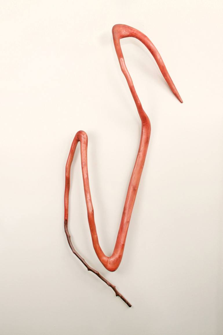 Most of my work is made from wood I salvage from my own, native trees due to pruning or environmental damage. "Twist & Turn" was fabricated from branches I saved after pruning one of my pear trees. It appears to be a natural, found form that has simply been cleaned up and dyed. However, the piece...