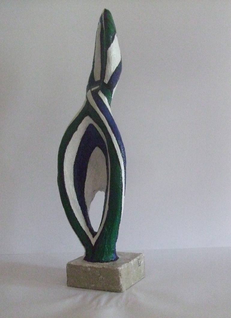 Unique mortar sculpture from my series of Twists. Inspired by dancing positions and postures with twists and turns. Apart from the vertical twist you can also detect a tilt to one side. The mortar sculpture has an acrylic paint and a varnish coating.