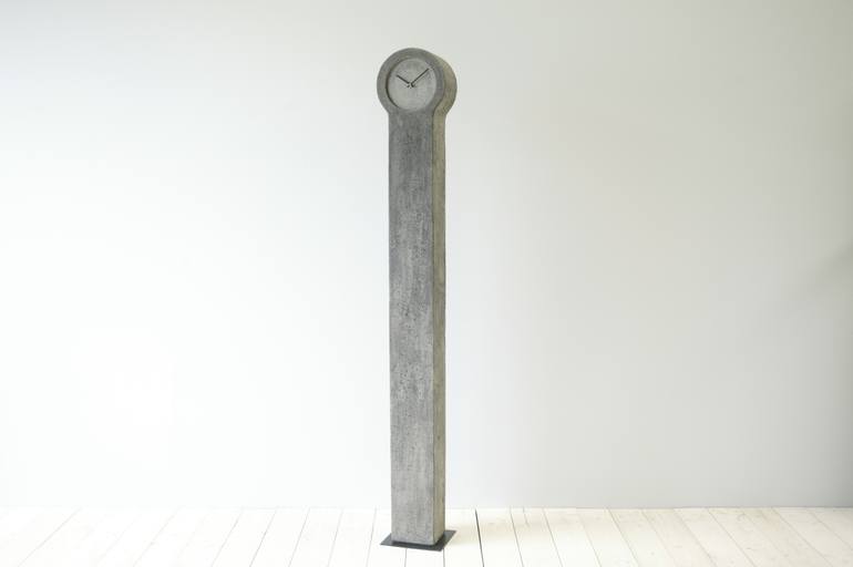 Grandfather clock in grounded and pigmented concrete with a base in black laquered metal. Quartz clockwork. Measurement clock: 195 x 18 x 16 cm Measurement metal base: 29 x 27 cm. (larger than on image) Limited edition of 180 pieces. Delivery: 4 weeks.