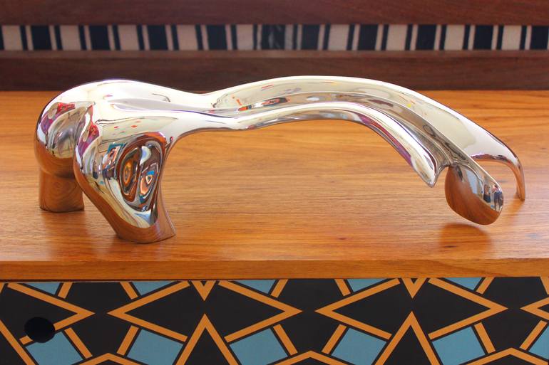 This is a bronze sculpture chrome. Is a woman figure, full of lightness and movment