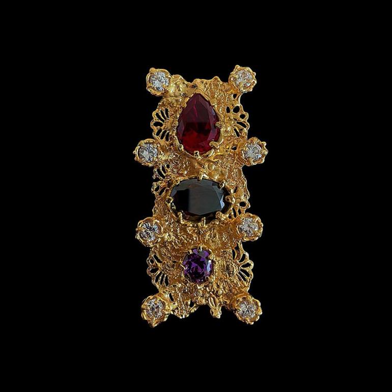 This handmade brooch was inspired by the Victorian era. It consists of delicate metal skills and brilliant cubic zirconia stones. The Victorian-era ornaments were inspired me to complete this project. Elaborate handcrafted skills and elegance style that I want to convey to people wearing my work.