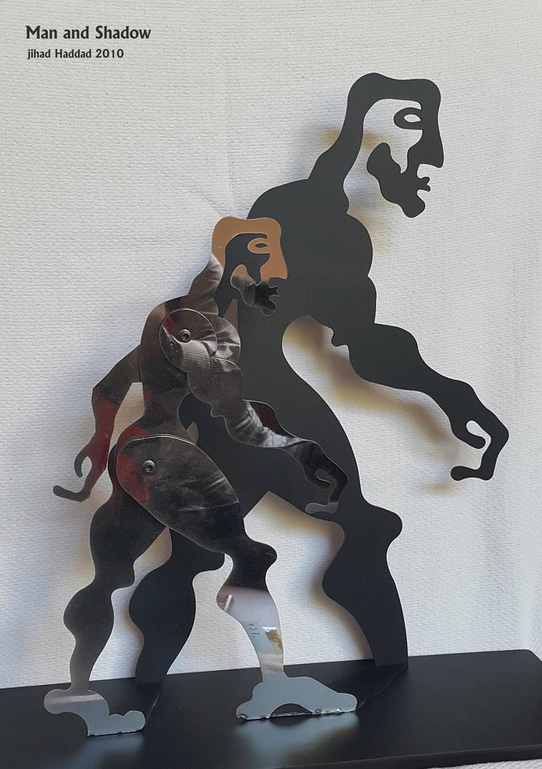 "Vladimsash" walking in the company of his shadow...he is reflective full of the nature and surrounding colors and texture reflections..while this shadow is huge and dark...