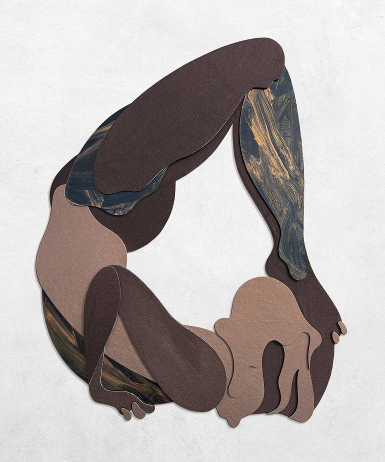 Vrischikasana is a wall-mounted relief inspired by the advanced yoga pose known as the "Scorpion." Constructed from layered textiles and painted surfaces, the piece evokes the human form in a moment of deep physical engagement - a backbend so intense it mirrors the coiled readiness of a scorpion. Th...