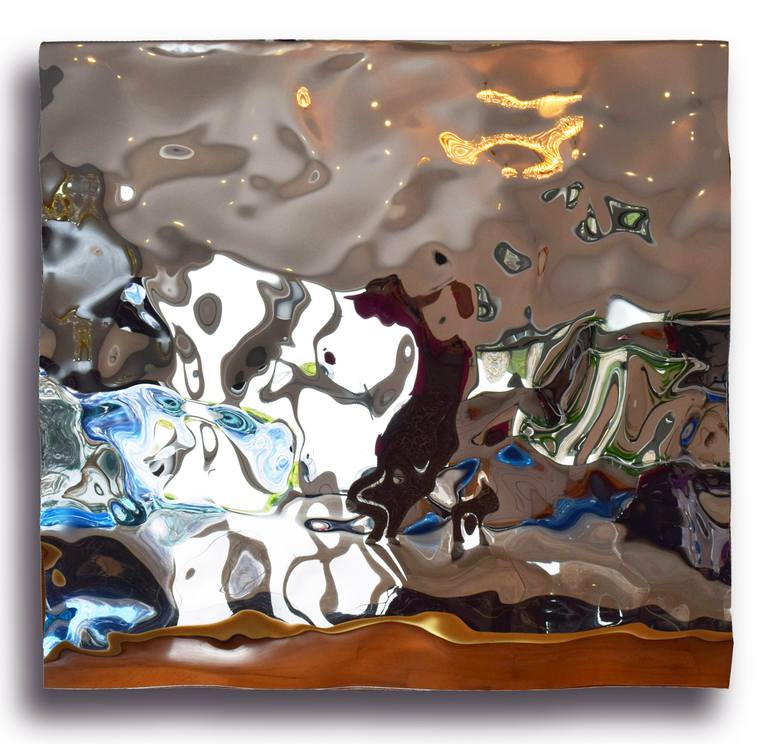 The color is all Silver. All other colors are reflections from surrounding objects. The white color is a reflection from the light. Fed up with flat shapes and paintings? Beautiful shades of Gold, giving the feeling of peace, calmness and serenity. The Artwork is Unique, hand formed. It's light an...