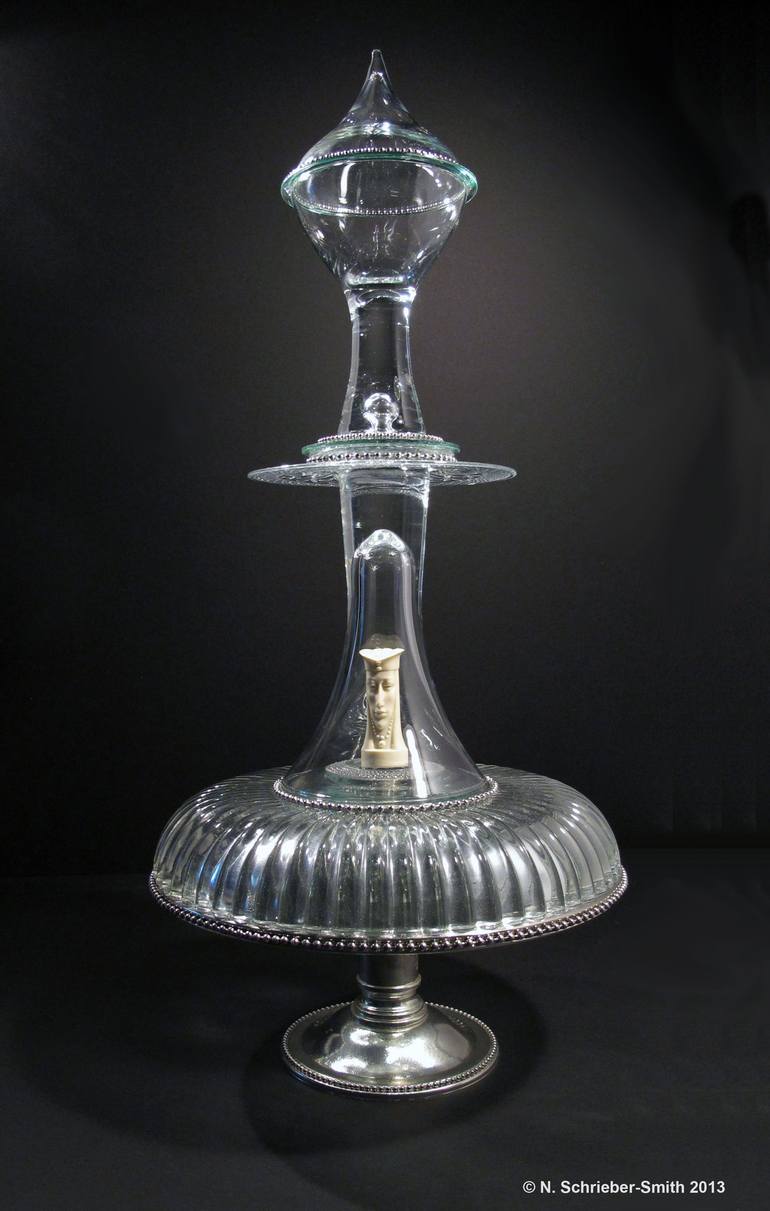 This Saatchi site is linked with : Schrieber-Smith is a multidisciplinary artist whose processes have evolved full-circle from glass, to mixed media assemblage, to painting, and now back to glass. Schrieber-Smith produces work in themed series such as the Paper-Doll series, the Neo-Mythology Series, the Working Women of the World series, the Glass Menagerie Series, the Glasscape Series and most recently the Animal Tales Series. The Glass Menagerie series began in May 2013, when she married her assemblage, painting and glass skills resulting in a whole new sculptural direction with open-ended imagery and mystery. The Animal Tales series couples her love of animals with her love of stories. Once again repurposing materials…this time books. The books are chosen to compliment the animal portrait. The portraits are a combination of glass painting and reverse painting on glass. The books are manipulated and adorned to compliment the painting which becomes affixed to the book. It is her intention for the artworks from both the Glass Menagerie Series and the Animal Tales Series to give new purpose and new meaning to the debris of our civilization. When not in the studio or in the classroom, Schrieber-Smith explores the world. Her extensive travel experiences in Europe, South America and Asia are an ongoing influence in both her artwork and her teaching. In 2016, Schrieber-Smith was honored by her Alma Mater with an induction into the Fine Arts Hall of Fame. Schrieber-Smith has works are in public and private collections both nationally and internationally.