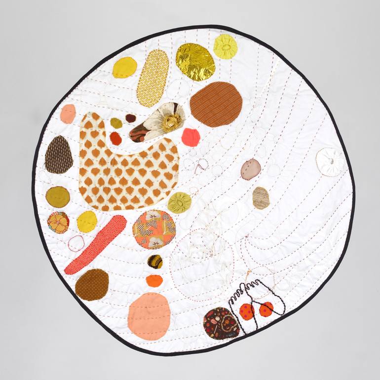 My name is Lila Chatfield and I am an artist focused on quilts and occasionally ceramics and painting, living in Brighton, UK. My colourful hand sewn wall hangings are narrative and expressive in style, embracing a contemporary folk aesthetic. Thematically, my work germinates from mundane happenings and often explores stories of mental states, cognitive dissonance and the edges of birth and death.I draw upon current popular culture, worldwide events and the wilderness of dreams to compose my work which features both abstract and figurative details. I play in an intuitive, improvisational way, often with discarded or vintage cloth and found objects. The boundaries of what is and isn’t a quilt are blurred in my work, which often features sculptural elements. My wall hangings are almost completely hand sewn, imbuing them with an organic feel that embraces the joy of the imperfect and the unexpected. A self-taught artist, I studied English and American Studies at the University of Sussex and worked as a secondary English teacher and later as an education officer before dedicating my time to my art practice.