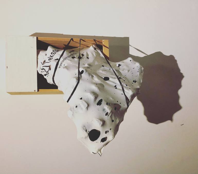 Still experimenting with used material; here with an eggbox, plastic bag and used wooden winebox