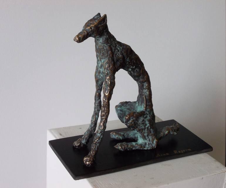 This artwork represents a figure of a dog . Bronze original sculpture. Dimensions without base: W 15 x H 15 x D 6 cm. If you wish this artwork: I wait for persons interested to buy this sculpture. Then I in a month will transfer a sculpture to bronze and I will send to the buyer Ask me about more...