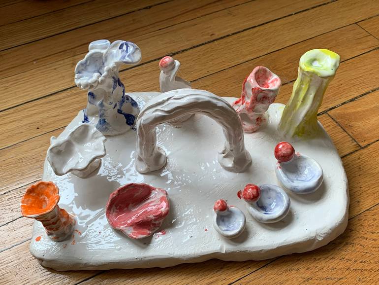 An impression of other worlds inspired by the other worldly creations from the artists thoughts and dreams, with a Dali feel. My very first full ceramics sculpture.