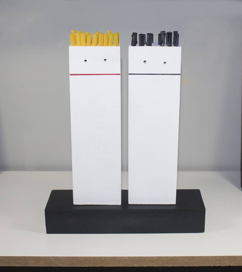 This piece originated when I was working on another project and between the wooden parts I was using I saw these two pieces together that inspired me to work with the idea of a couple.