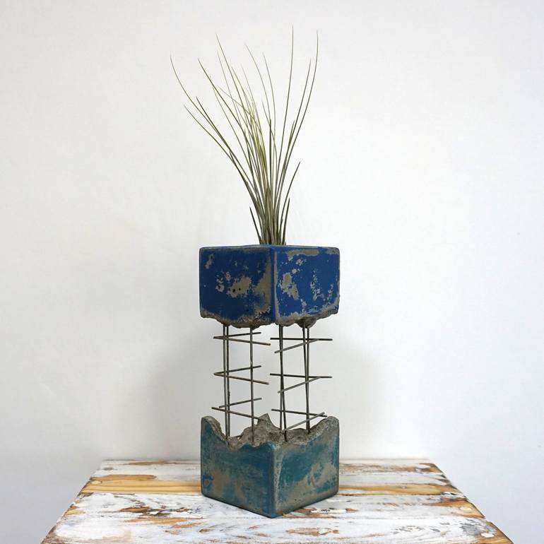 Rough sculpture vase in concrete in brutalist style, handcrafted product. Flaws and imperfections are due to the fact that the product is handmade. It is accompanied by a certificate of authenticity which guarantees the uniqueness of the piece. Concrete creations, made without formal mediation. Ther...