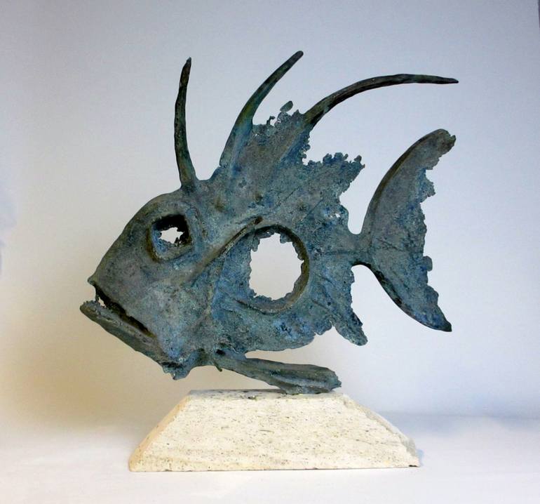 This fish with many names is the Prince of the blue sea, the Knight with sharp sabers, the invisible killer from the deep. Blue patina suits him the best.