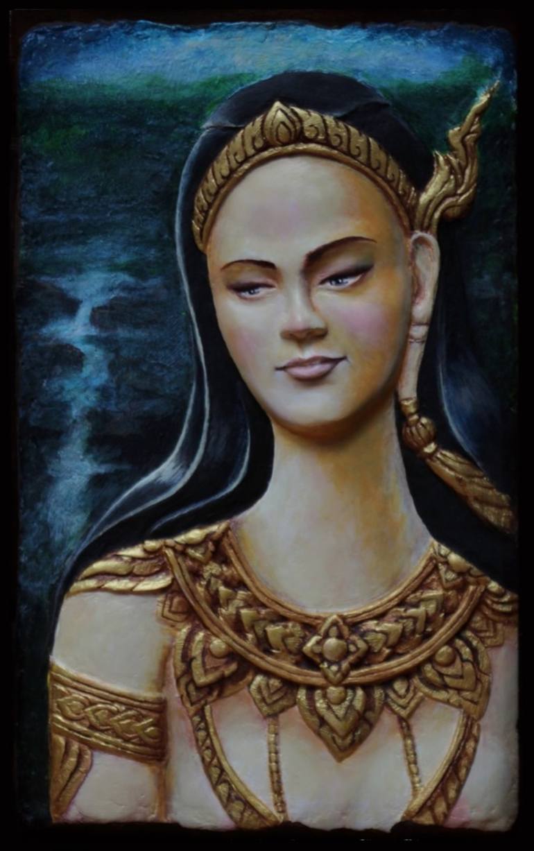 #bas-relief /size 35x55 cm. #Painted #Sculpture by PRASiTT CHANN /Material - diy paper clay ( #recycled #paper ) acrylic paint