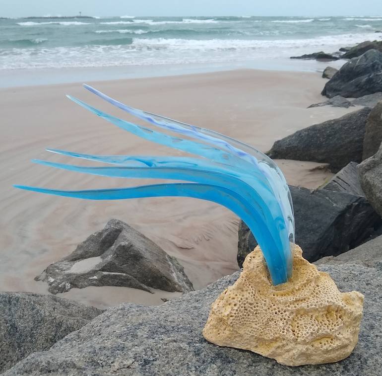 The blue translucent seaweed takes me to the warm tropical waters. I believe I have captured the tranquility of the seaweed and vegetation of the sea on a hot sunny day. the sculpture looks great when lit from behind.