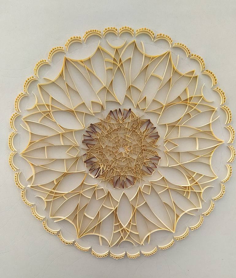 *This is a Paper Quilling Mandala Artwork which is named "Quilling Mandala " is Handmade. 1) Measurement = height : 15 inches width : 15 inches 2) Glass framed 3) Wall Hanging 4) White frame 5) 1-2 weeks process time > This art piece is made up of paper quilling strips. It's Quilling Mandala pain...