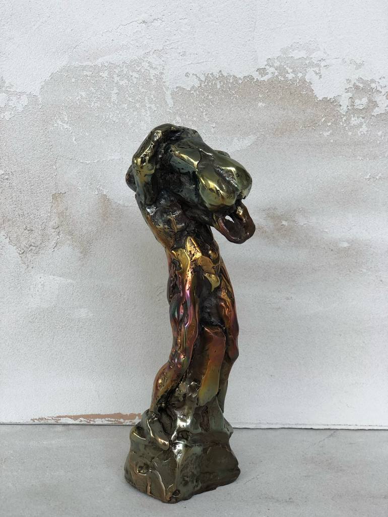 dans cette piece inspiree de rodin, j ai cherche a degage de la puissance et l elan donne par la tension de la position y contribue