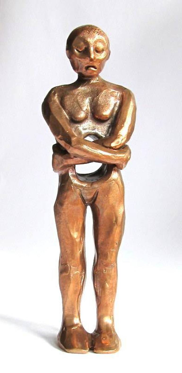 Emptiness...a depressive person. Modeled by hand in wax into a sculpture and cast directly. Material: hot casted bronze. Blackened and polished. HOT CAST BRONZE This more expensive method is an ancient process that is many thousands of years old. Hot cast sculptures can last for many thousands o...
