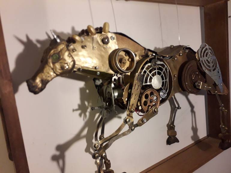 My passion for creativity and found objects has reached new heights with this sculpture: Eternal Horse. An elegant mechanical horse merges an antique clock with a stone, a symbol of my homeland. This project was born from the idea of giving new life to an antique clock that had lost its original ...
