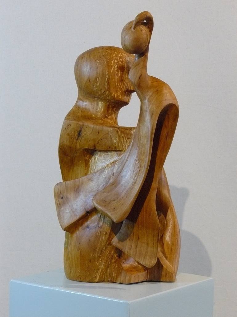 "Body and soul" was my intention, but I was´t content to put "soul" in a defined form. It does´t represent my imagination of soul as eternal energy. So it became a thought (of "soul"), fleeting, caught in a moment before it changed and floated away. The elder wood is vividly textured. I treated it w...