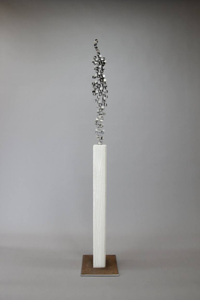 This artwork consists of many individual cubes made of stainless steel. Each cube was sawn from a 20mm shaped tube and the edges were sanded. Manfred Hellweger welded the individual parts using a TIG welding process and then passivated them to create an oxidation-resistant surface. The artist cas...