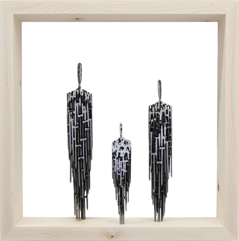 human nails WALL #4 consists of many individual wire nails, which have been connected to each other through targeted welding points and unite to form abstracted, human forms. For the presentation of the "human nails" the artist uses here a high-quality frame made of solid, finely polished and natur...