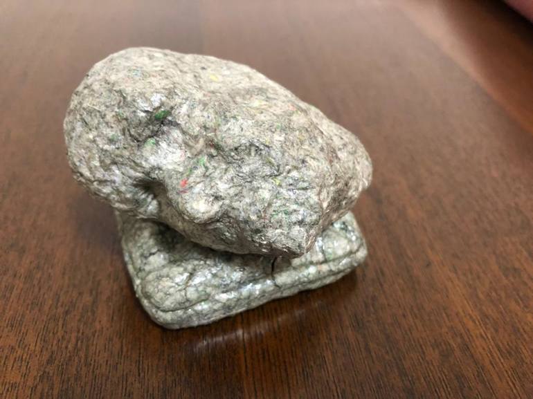 "...keep your head..." is a title of a sculpture made of paper using paper mache technique. Title of the artwork comes from a Rudyard Kipling poem called "If". Living next to enemies is hard. Are you strong enough to keep the head?