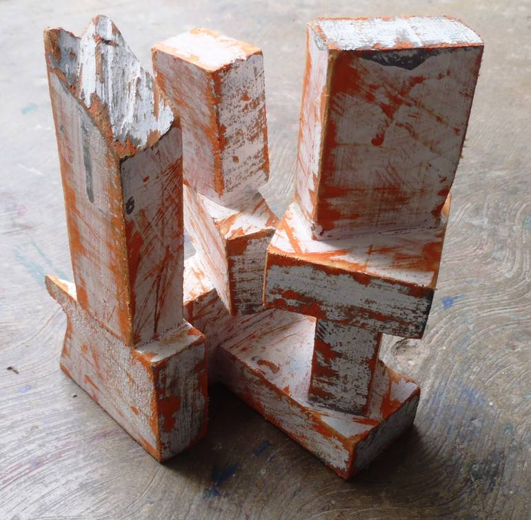 abstract sculpture made from scraps of found painted wood