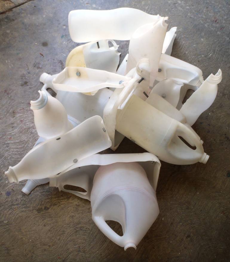 another piece self standing or hanged from Wall made from found discarded p`lastic bottles