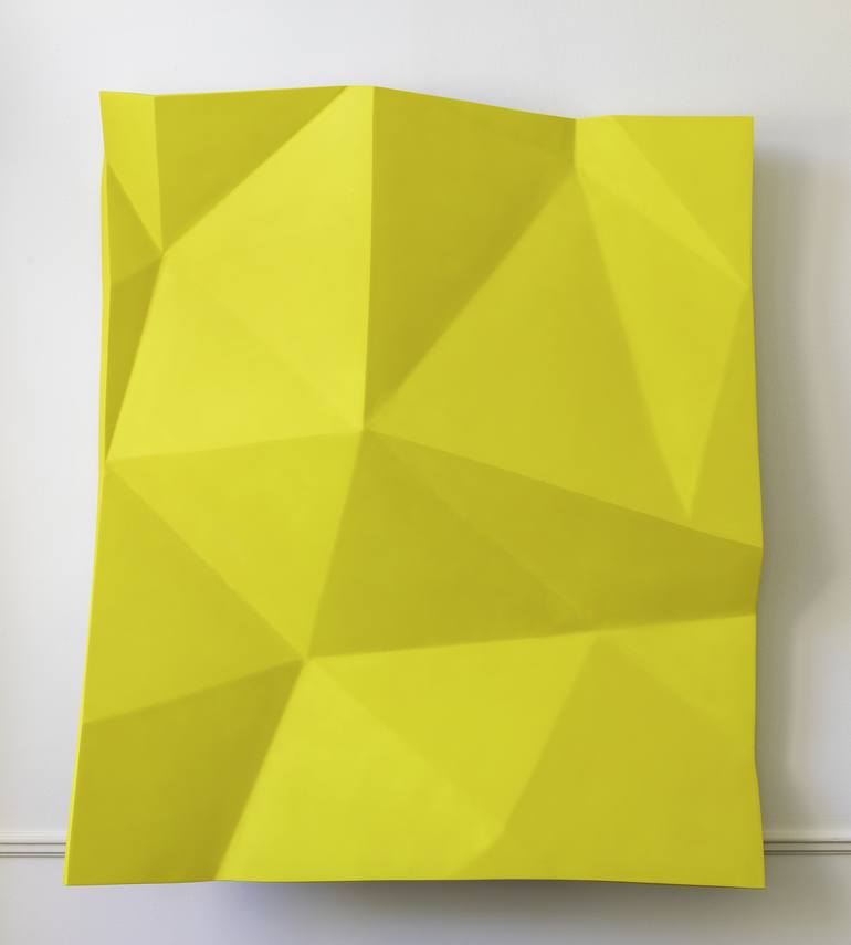 this abstract wall object is made as if you have been folding some paper. The lines make an interesting shadow on the art piece and can ba hanged in several ways. Horizontal and vertical.