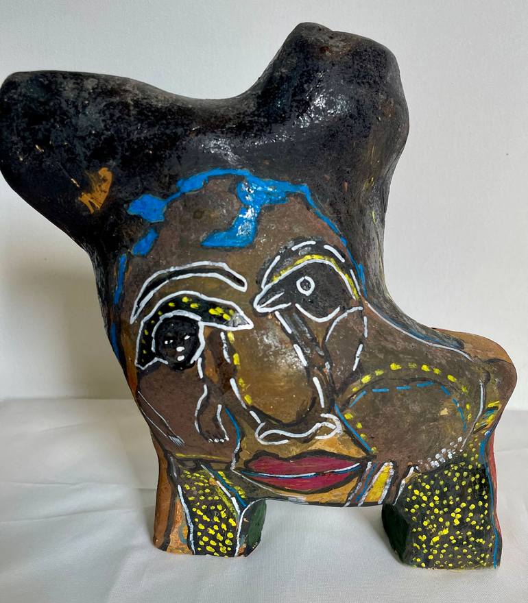 this shape inspiration from bird outline but painted on it big face like magic figure by mu vision about create person on my world , i show it on Egypt 2018 on my solo exhibition , its unique ceramic and contemporary, i drawing on it by my own style on painting like maps